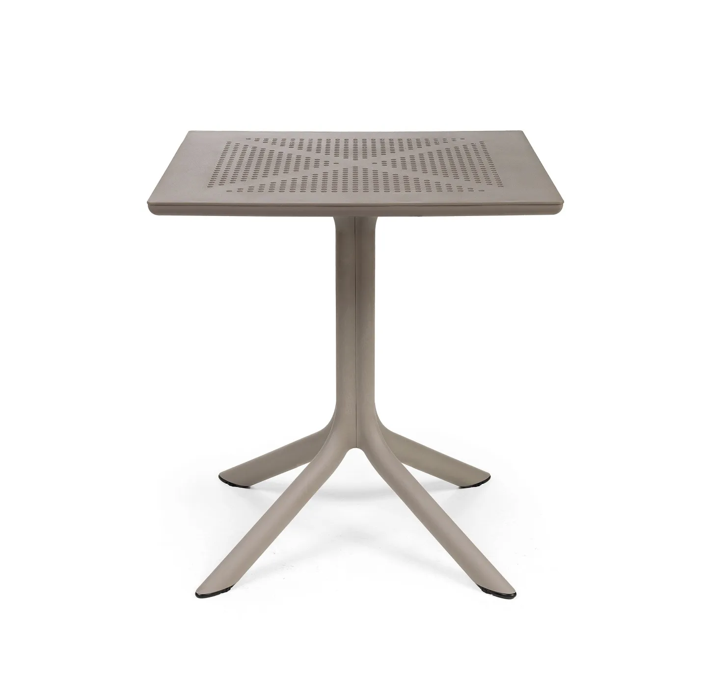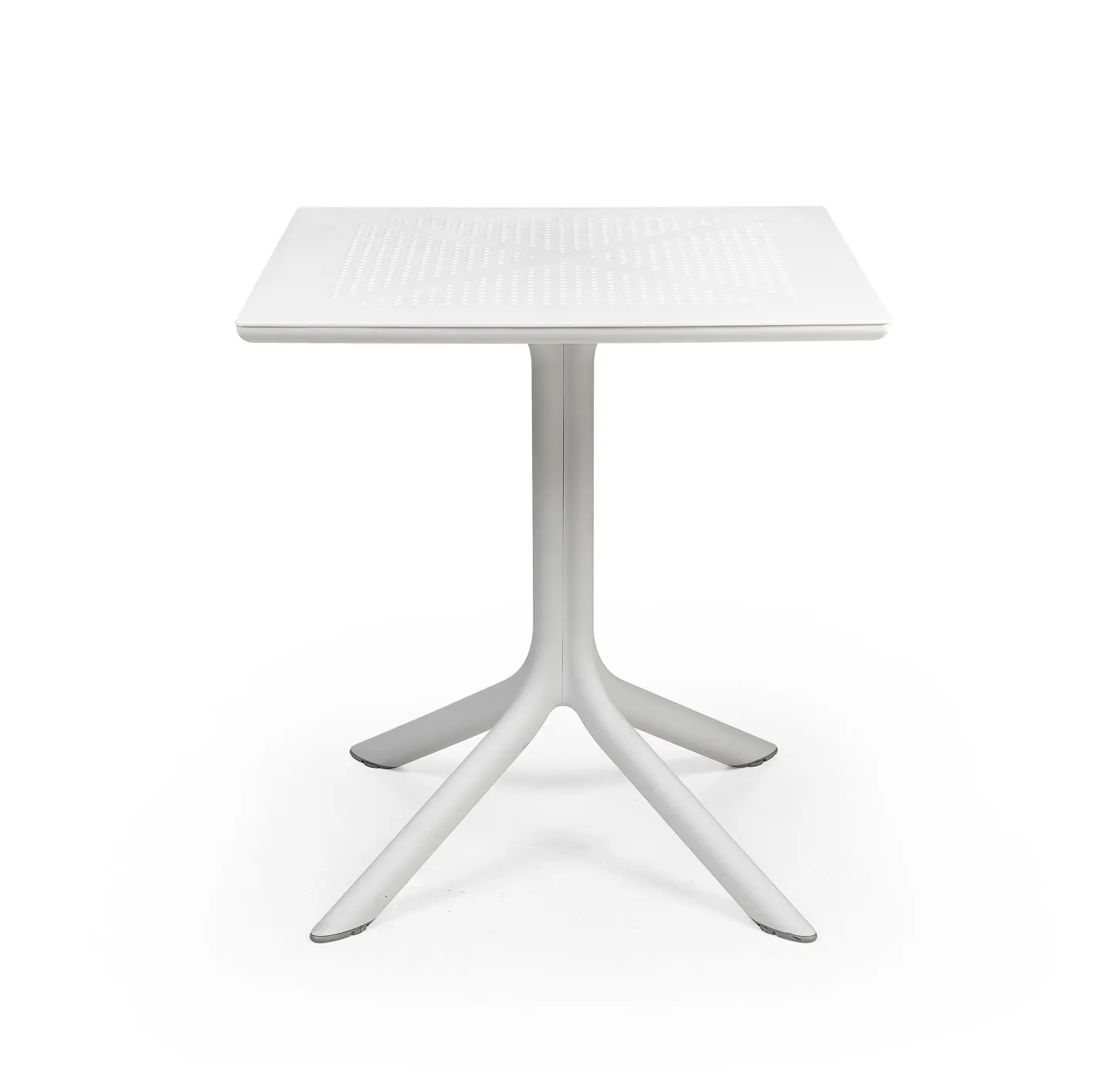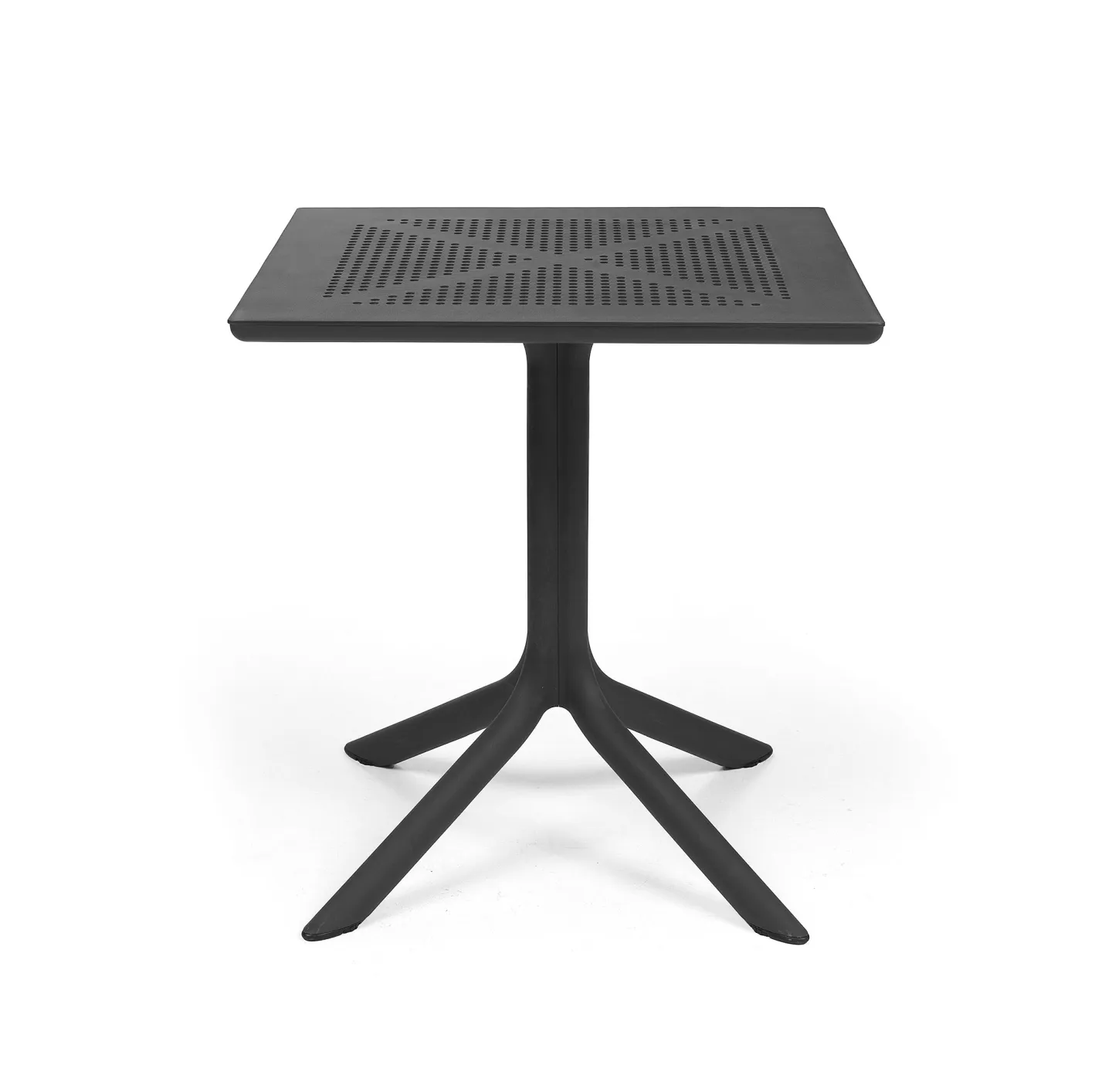Nardi Clip je moderan i funkcionalan vanjski stol koji dolazi u dvije praktične dimenzije, 70×70 cm i 80×80 cm, čime se lako prilagođava različitim vanjskim prostorima poput terasa, vrtova, balkona i ugostiteljskih bistro zona. Zahvaljujući kompaktnom kvadratnom obliku, idealan je kao outdoor stol za kafiće, restorane i manje terase, ali jednako dobro funkcionira i u kućnoj upotrebi kao vrtni ili terasni stol. Njegov suvremeni dizajn s perforiranom površinom unosi vizualnu lakoću i moderan izgled u svaki eksterijer, dok stabilna centralna baza osigurava sigurnost i ravnotežu tijekom svakodnevne upotrebe. Nardi Clip stol često se bira kao bistro stol, stol za vanjski prostor ili stol za ugostiteljske terase jer nudi optimalan omjer estetike i funkcionalnosti. Dostupan u više boja, omogućuje jednostavno uklapanje u različite stilove vanjskog namještaja i stvaranje skladnog outdoor ambijenta. Bez obzira tražite li manji stol za intimnije prostore ili nešto veću površinu za udobnije druženje, Nardi Clip u obje varijante pruža dugotrajno, praktično i elegantno rješenje za suvremeni vanjski život.