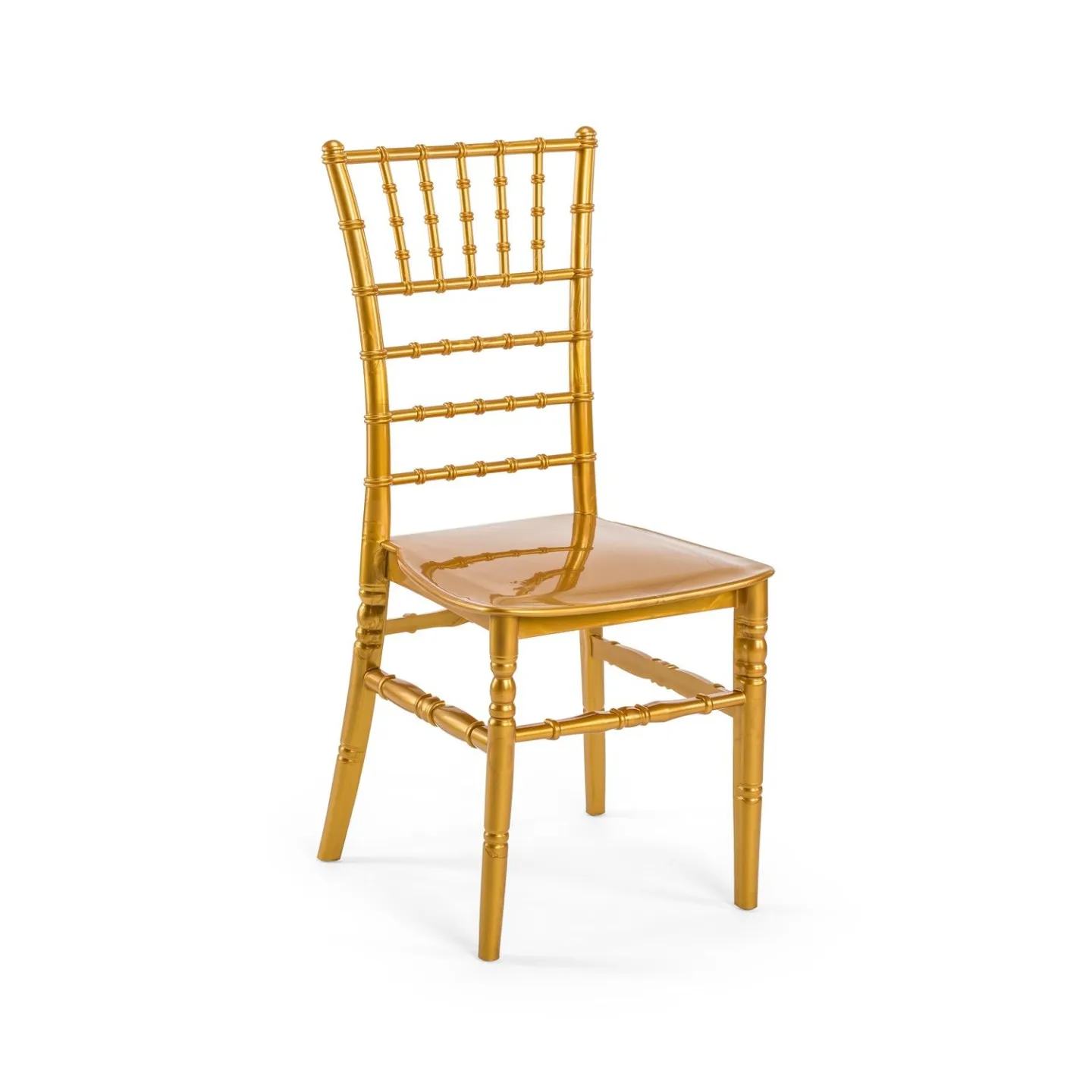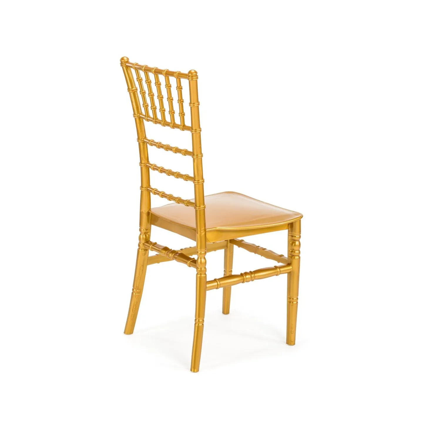 Izrađena od visokokvalitetnog i čvrstog polipropilena, zlatna Tiffany stolica jamči izdržljivost, lakoću transporta i mogućnost slaganja, što je čini posebno praktičnom za event industriju i najam opreme. Ergonomski oblikovano sjedalo osigurava udobnost tijekom cijelog događaja, dok njezina luksuzna završna obrada savršeno pristaje uz bijele, crne, pastelne ili zlatne dekoracije.