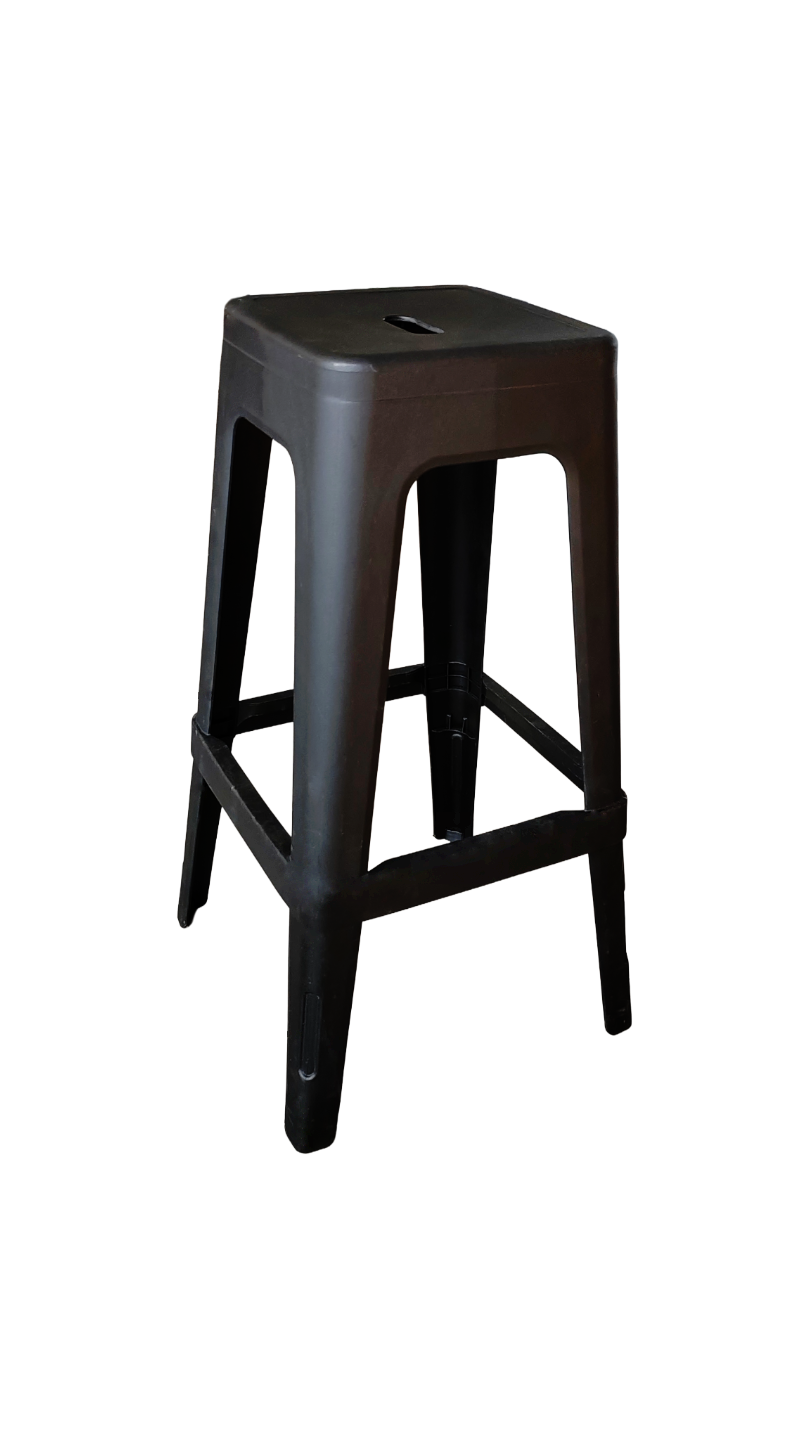 Ta plastični barski stol višine 75 cm v črni barvi je praktična in trpežna rešitev za kavarne, restavracije, barske pulte, terase in kuhinjske otoke. Stabilna konstrukcija in preprost dizajn omogočata uporabo v gostinstvu, doma ali pri podjetjih, ki se ukvarjajo z najemom pohištva za dogodke.